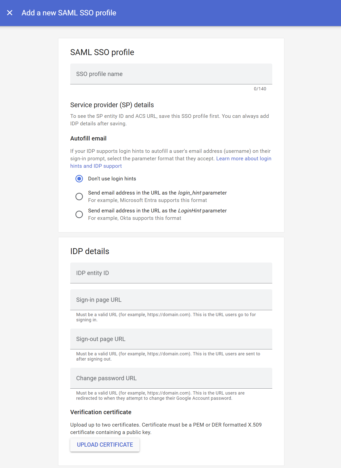 This article provides step-by-step instructions for setting up a third-party SAML Single Sign-On (SSO) profile in Google Workspace to use Skolon as an identity provider. These steps are also described by Google on their support article “Setting up SSO