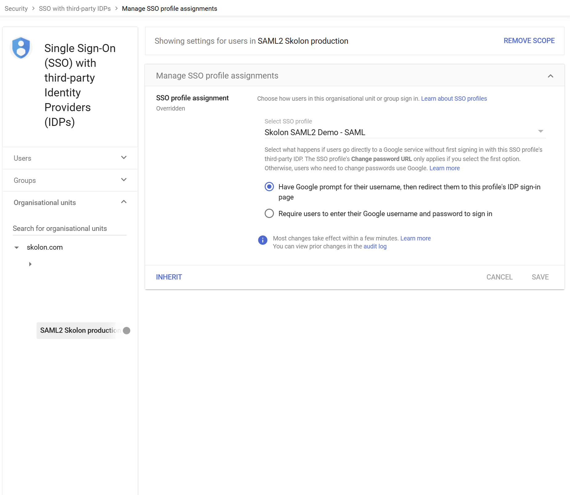Once you have confirmed that the login works as expected, you can proceed with assigning the SSO profile to the primary pupil OUs.