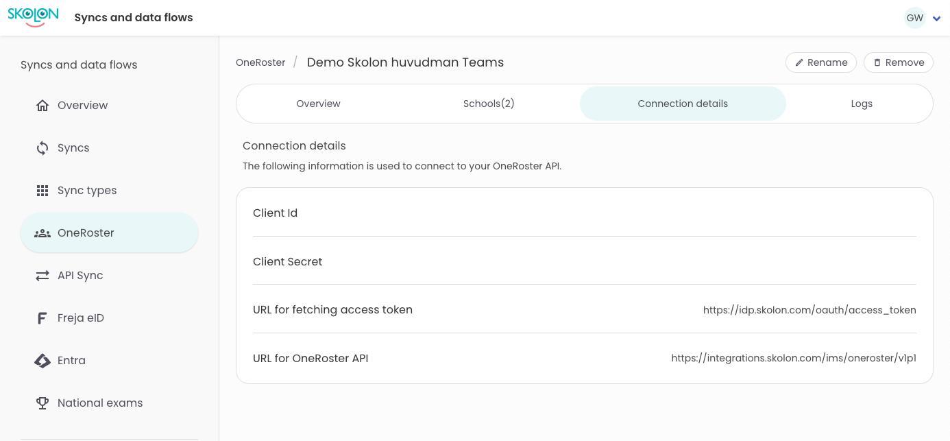 If you are missing an entry for your OneRoster-configuration, please contact our support and we’ll help you out.